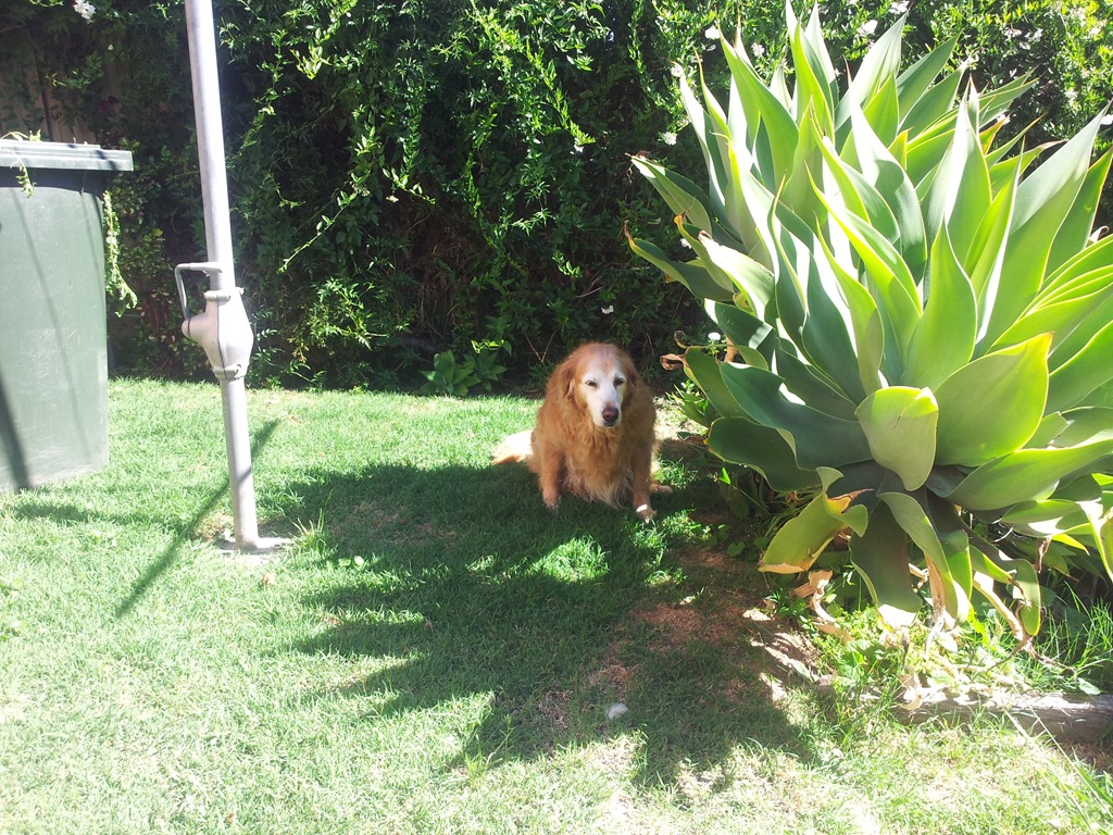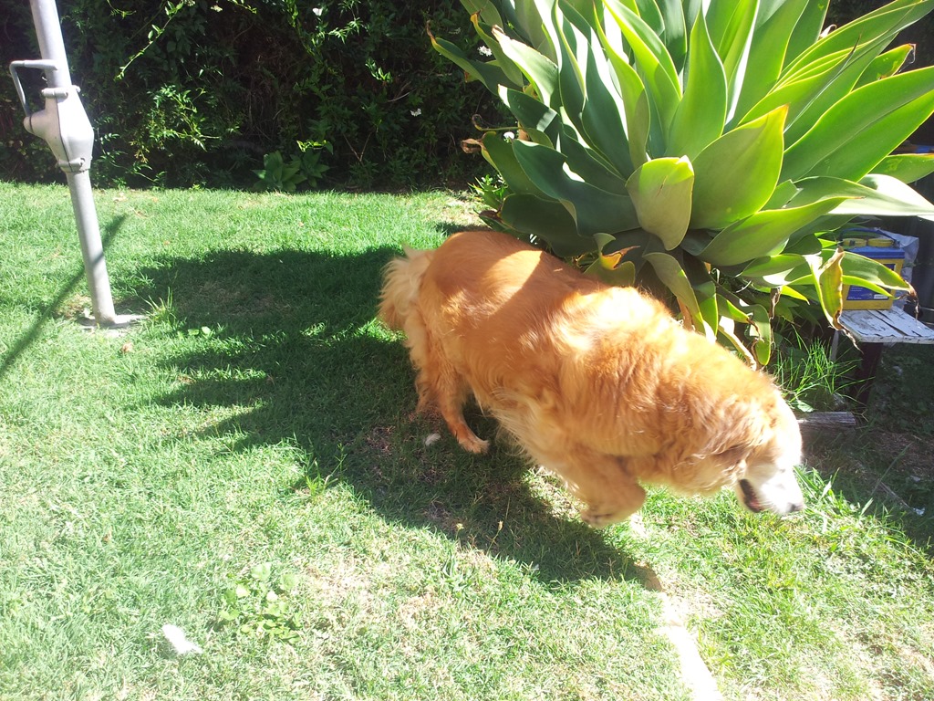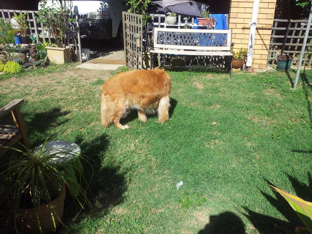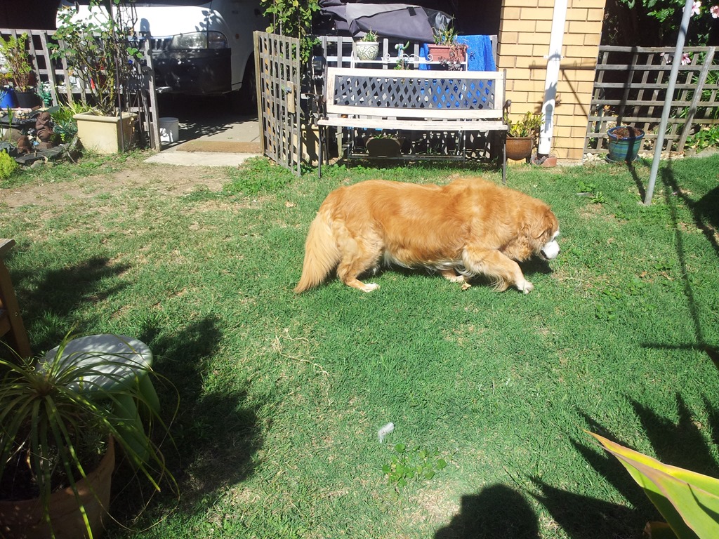 Out for a break and a pee. Amazing how she can still take care of business. As already posted she is booked in on Monday at Boronia with Tony for cruciate ligament surgery and this time will stay overnight.