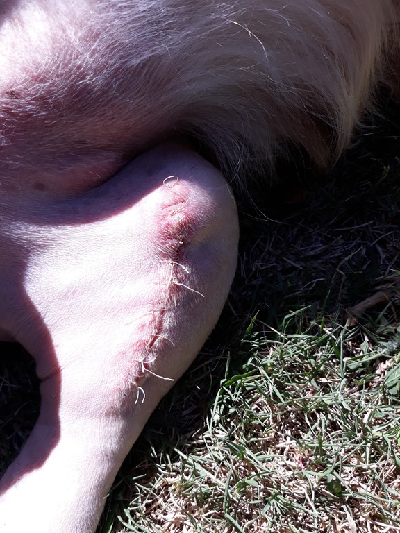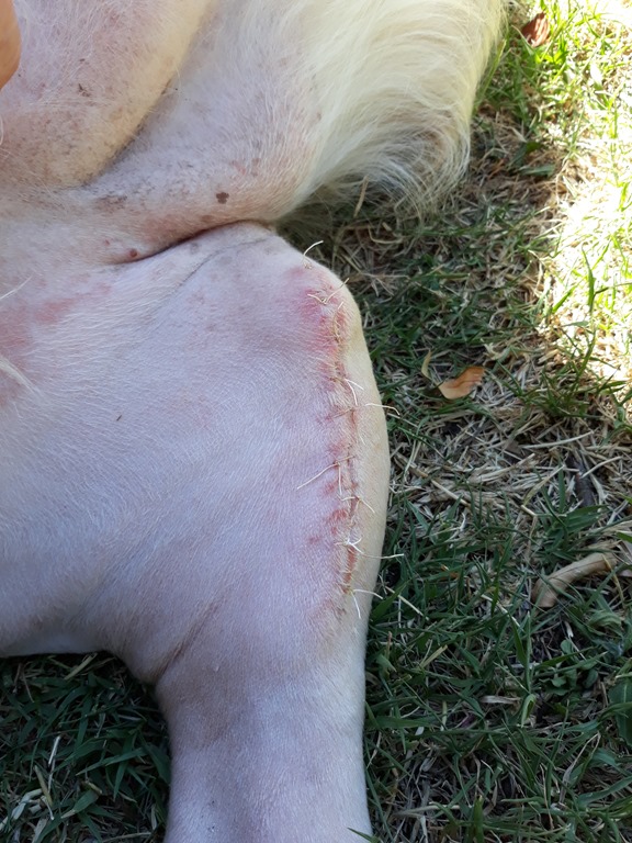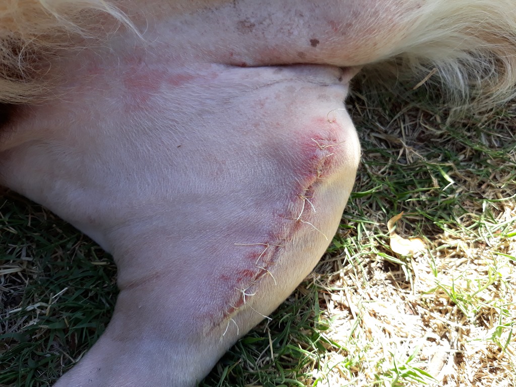 Holly is one week into recovery from cruciate ligament surgery performed by Dr Tony last Monday 12th. Everything is going well and all the recovery signs are good.
