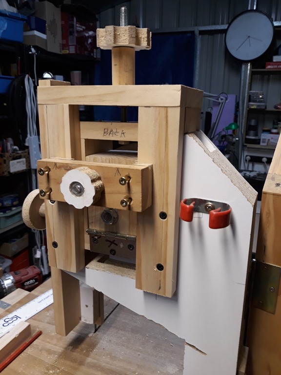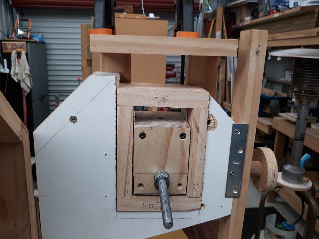 This is the back with pine screwed either side, the frame slides inside for blade tension.