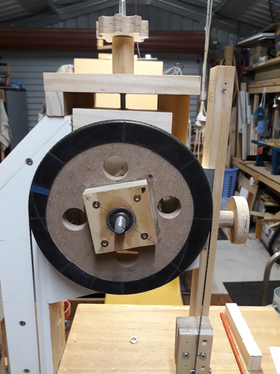 This is the upper wheel block blade tension and tracking assembly. It does work but to hard to setup up so I’m going to pull out the whole thing and start again.