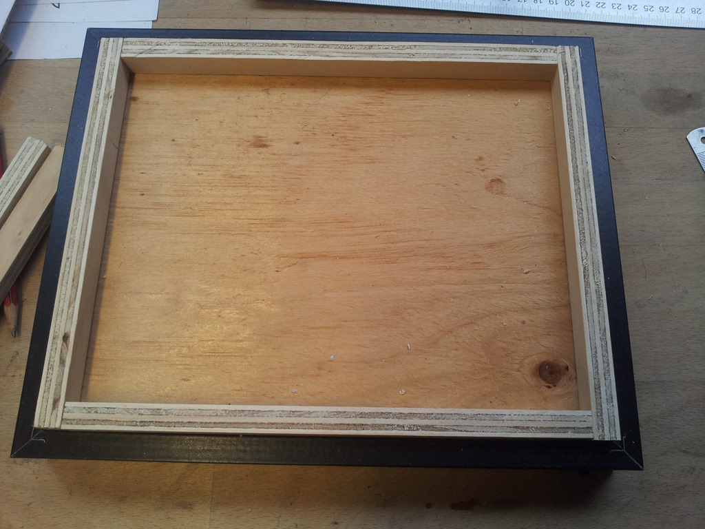 As mentioned need to make a frame that sits inside the back of the main frame that is then glued to the back of the base board.