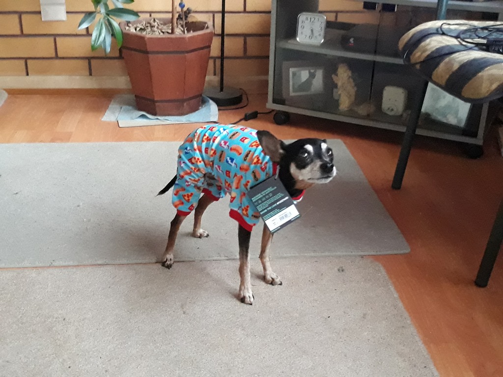 Last week I posted photos of Pixie in her new coat which was a Size 2 and turned out to be to large so here she is modelling the exchanged Size 1 – looks happy LOL