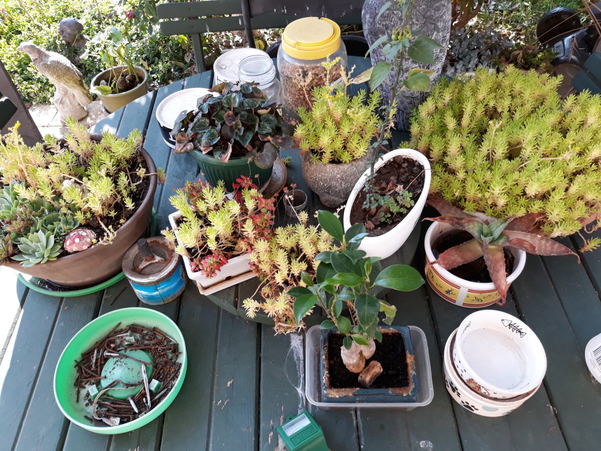 Most of this was tagged for throw out by my wife but I’ve nursed moat of them back to health including the little fig tree. I’ll use some of it to fill that pot plant container for the pond.