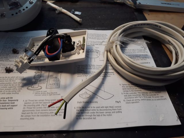 Collecting what I need, this little roll of three core cable will do nicely between fan and controller. I got this when Masters was closing down, sitting all by itself on a barren shelf with a price tag of 50 cents. I knew it would come in handy one day.