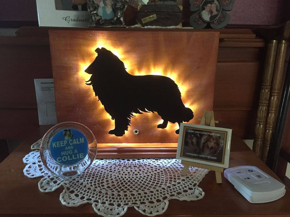 Always nice when happy customers send back photos of their silhouette night light(s) along with lovely comments. The doggie made a safe trip from Wheelers Hill to Coldstream. This one features remote control (bottom right corner).