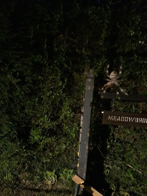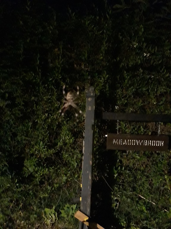 After taking those photos went to get the sign to put in the workshop and very nearly walked into this nocturnal visitor with my nose brushing the web – Crikey