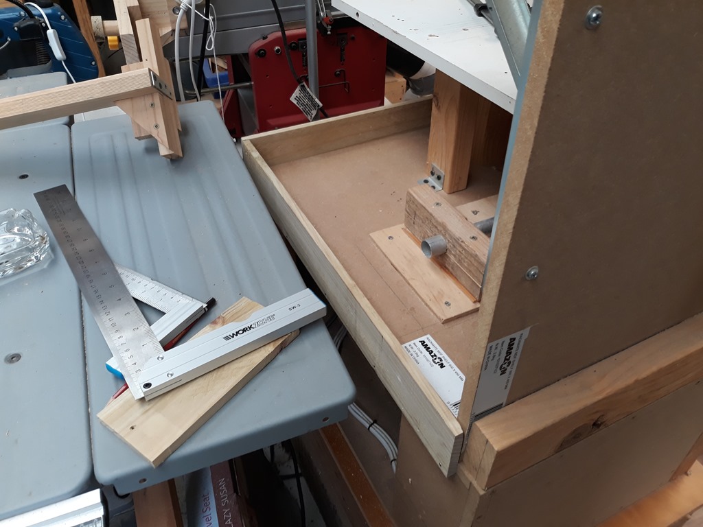 Closing in the sides of the band saw motor box for some more storage.