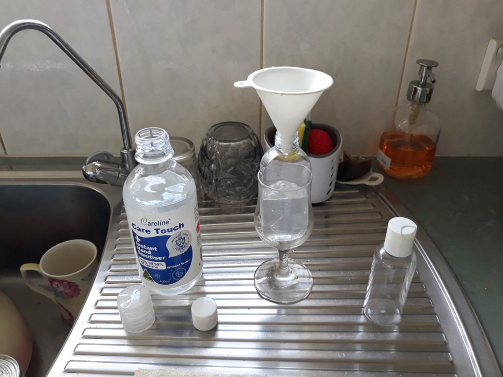 ET found two small squeeze bottles; I’m doing a transfer so we can keep one bottle in each of the cars.