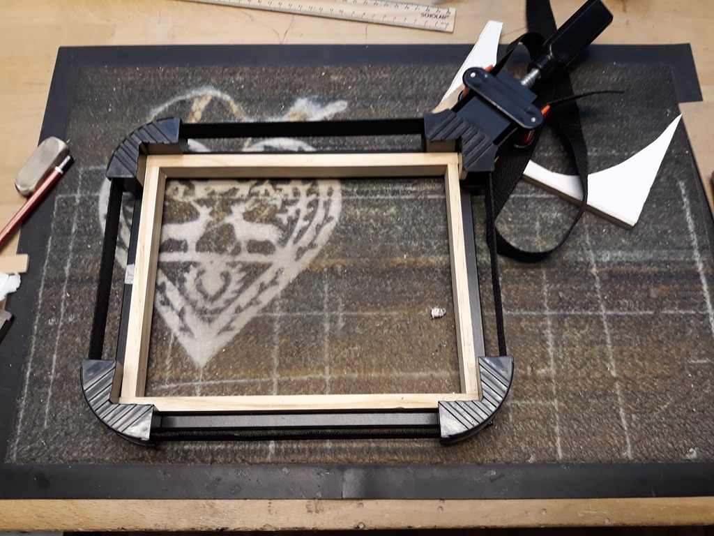 Glue-up for Scarlett’s internal frame, which as usual will sit inside the back of the actual photo frame.