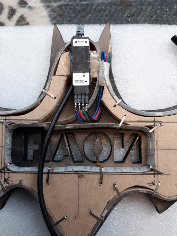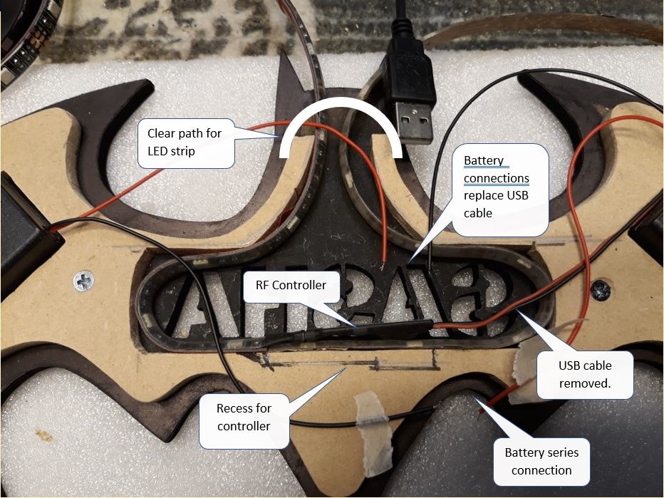 Tomorrow morning I’ll cut out the controller recess and start running the LED strip around the bat and then wire up to the battery boxes.