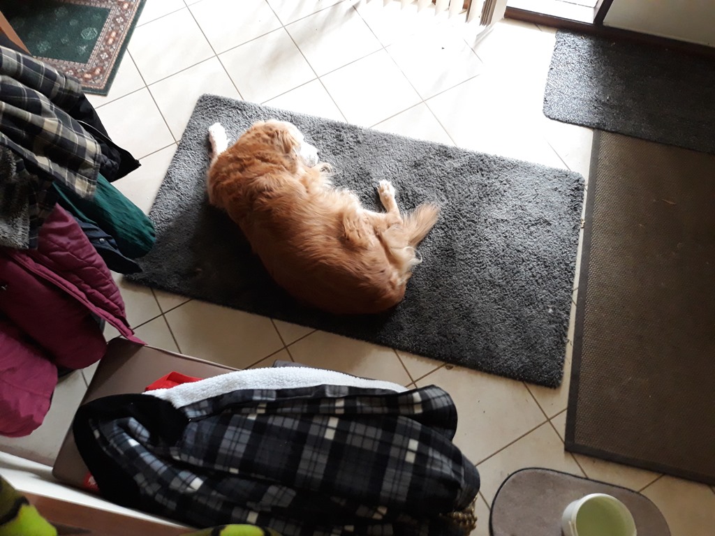 Holly this morning not able to make the short distance from her bed to front door – needed assistance. Booked her in this morning for vet visit tomorrow. It was only last week she had her monthly Pentosan injection