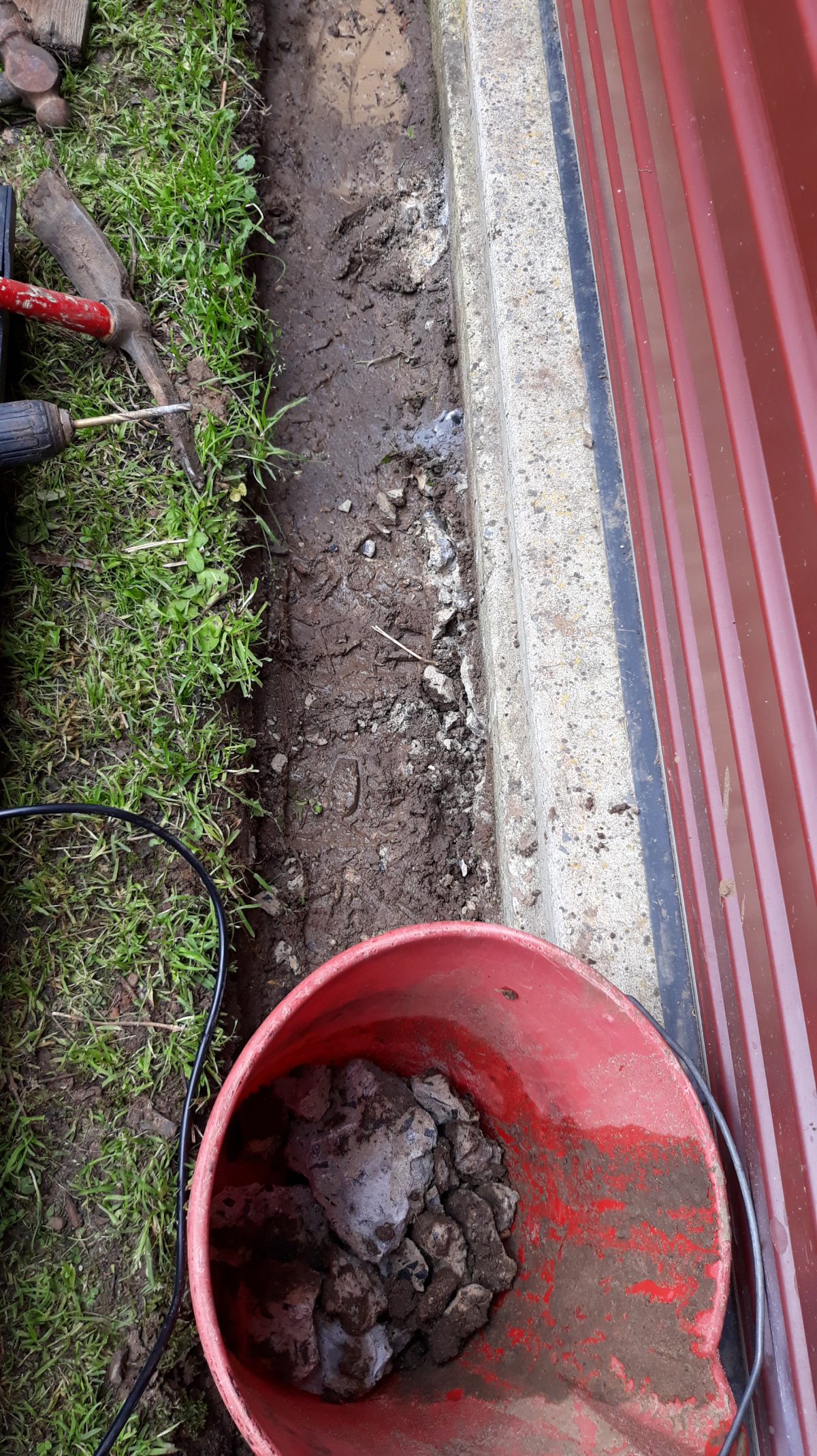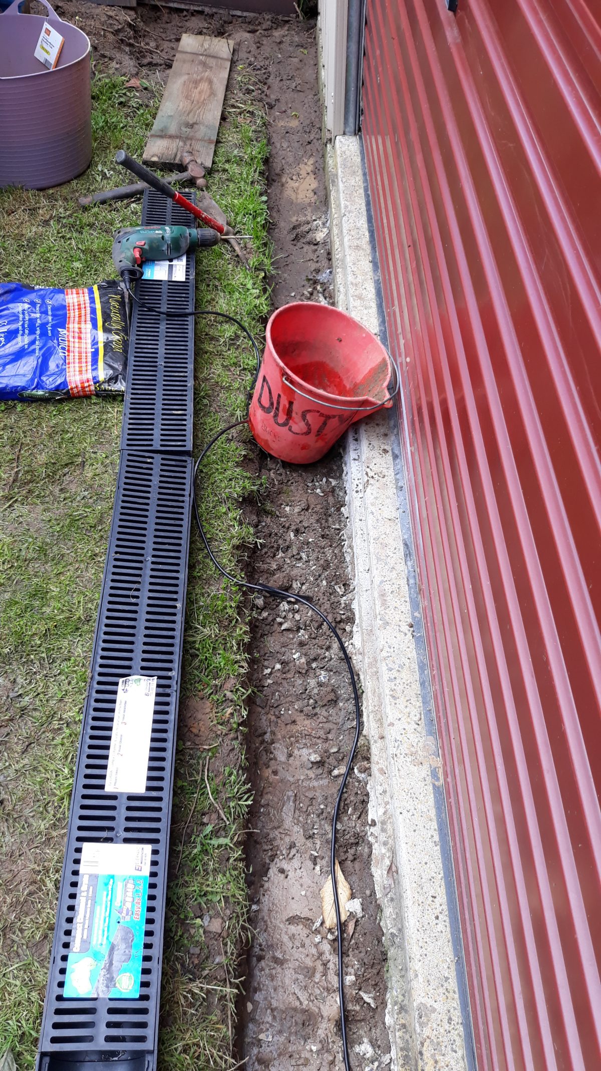 With that done let’s put the drain in and start levelling with a fall to this end.