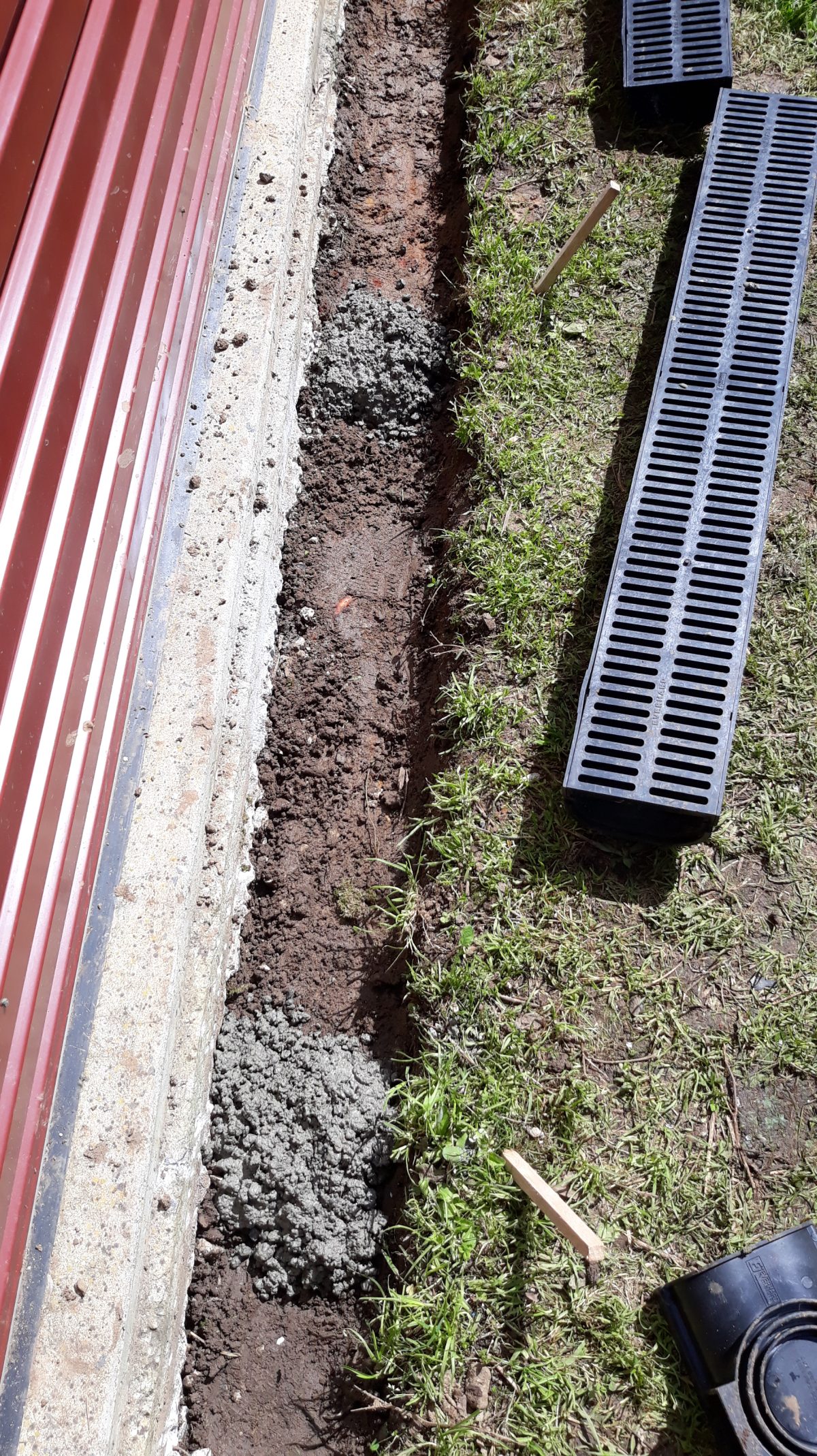 Corner lines up nicely with the PVC pipe which will be spray painted black and back filled with gravel.