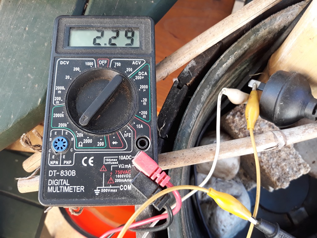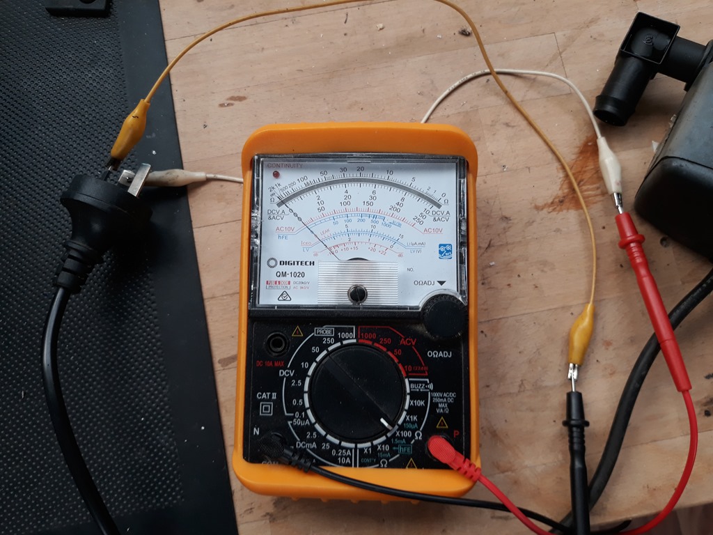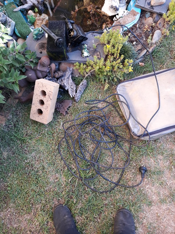 I turned 73 last week so let’s check my memory by taking a reading on another Aquapro pond pump. This one is the next size down that is used in the bamboo water spout that is also getting it’s annual cleanout. That reading is 2.29K ohms so my memory on this occasion is OK. Off to Bunnings to buy a replacement pond pump.
