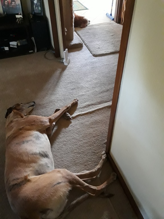 Sprocket – who belongs to our younger daughter has just arrived to stay at Meadowbrook Mansion until next Sunday while his mum is off on a camping trip.