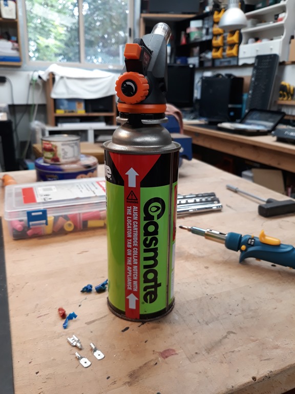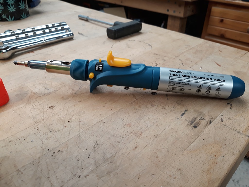 Just in case the soldering is not hot enough prep the gas one.