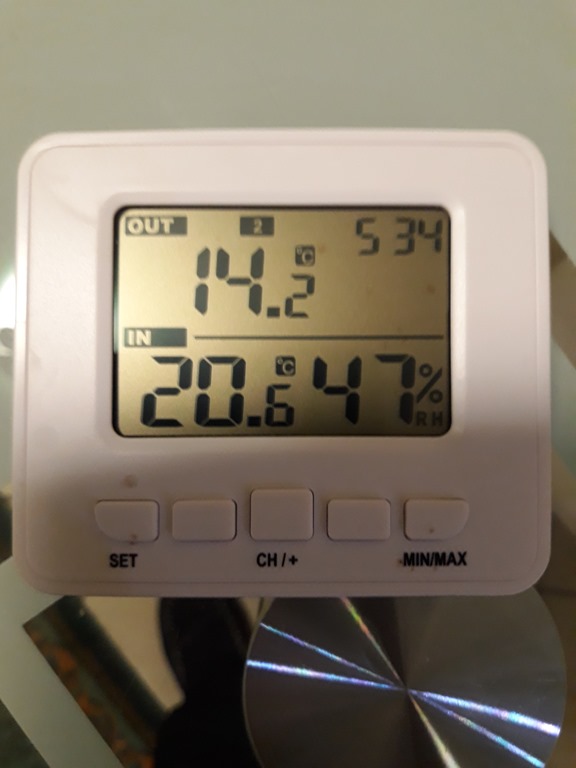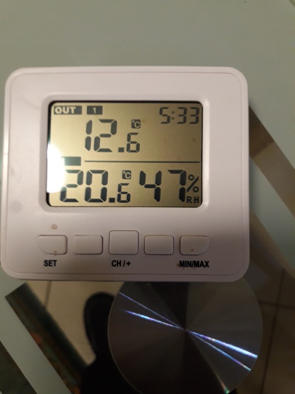 Here the display is showing Channel 1 for the sensor just outside the chook shed.