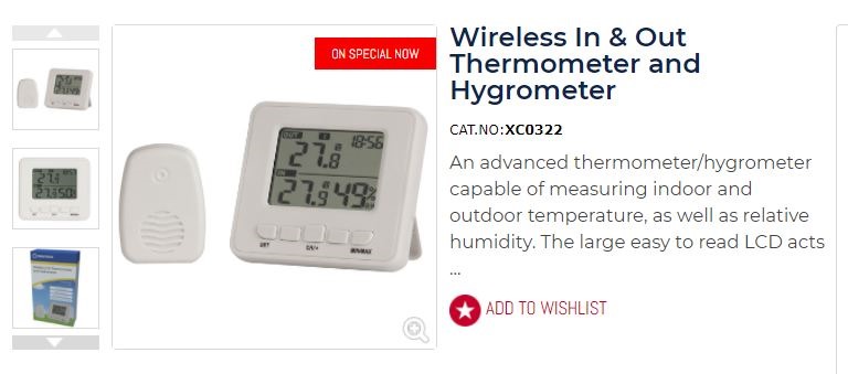 Jaycar – XC0322 Wireless in-out Thermometer-and Hygrometer.