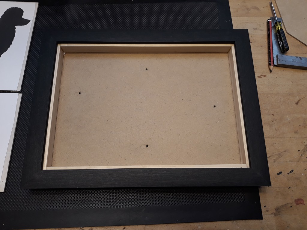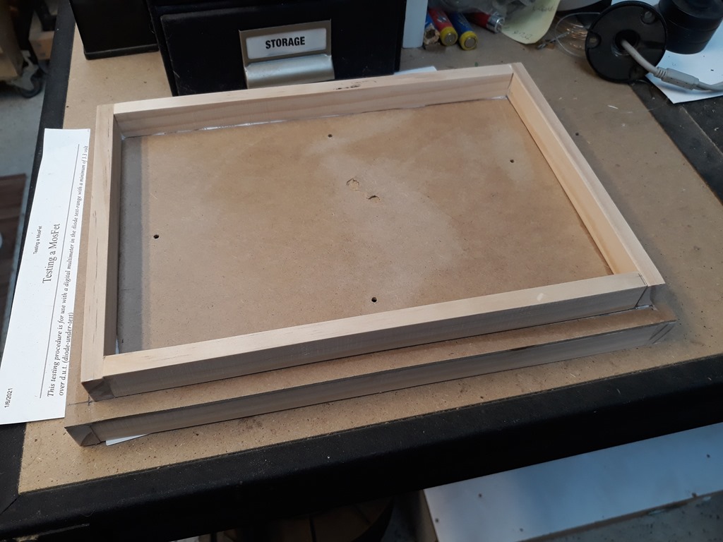 In the last session we glued the pine strips around the MDF picture frame back, flush to the edges.