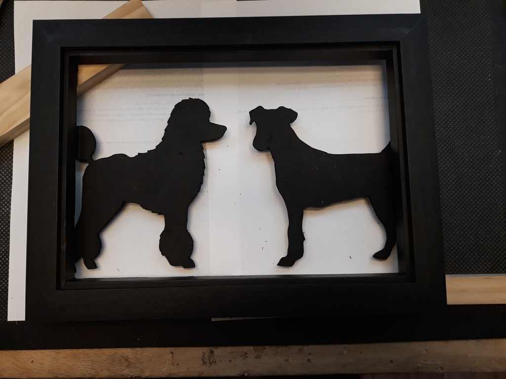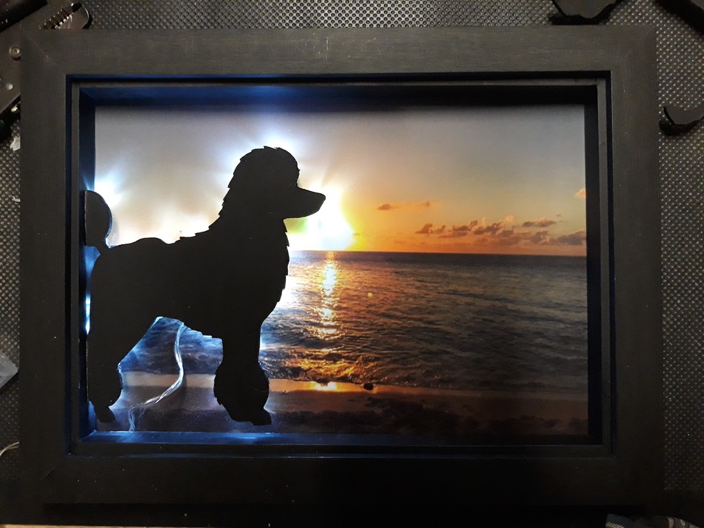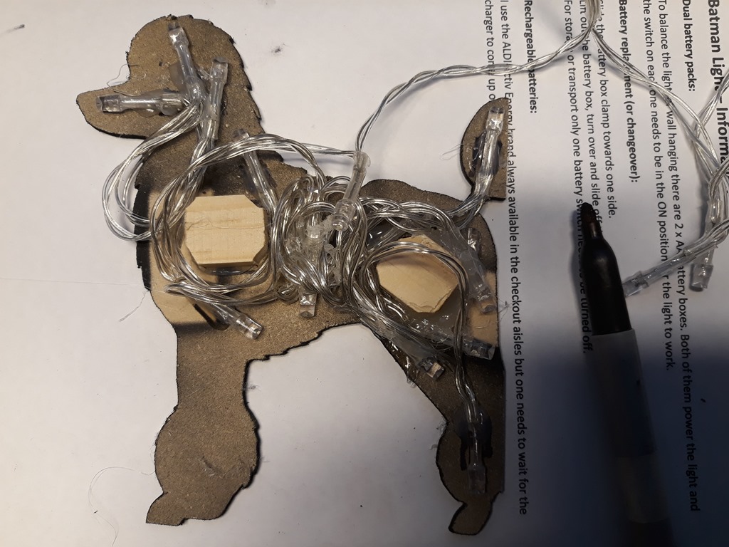 From the last session the MDF doggie silhouette’s are ready for the LED back-lighting.