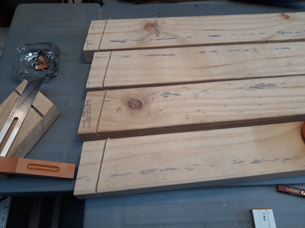 Not how I have nicked below the line; this will provide a glue channel later on when the leg is glued and screwed to the main plank resulting in a stronger bond.