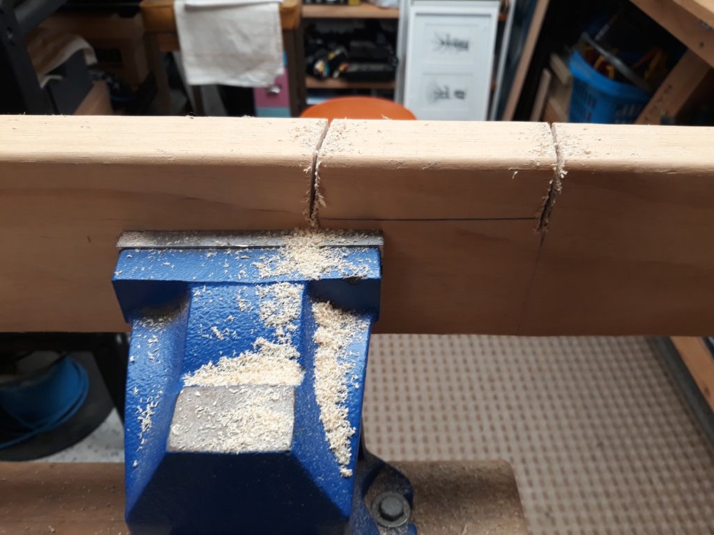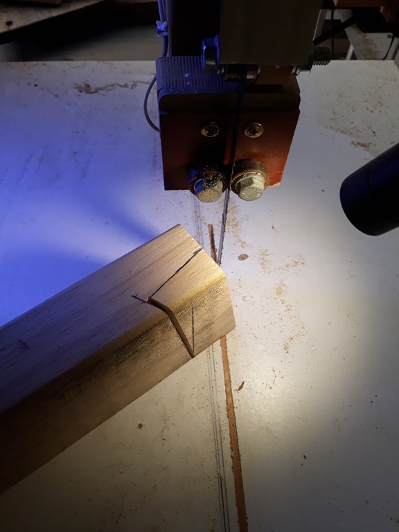 Continue on with the legs with a combo of compound mitre cuts, bandsaw cuts and even using the good old handsaw.