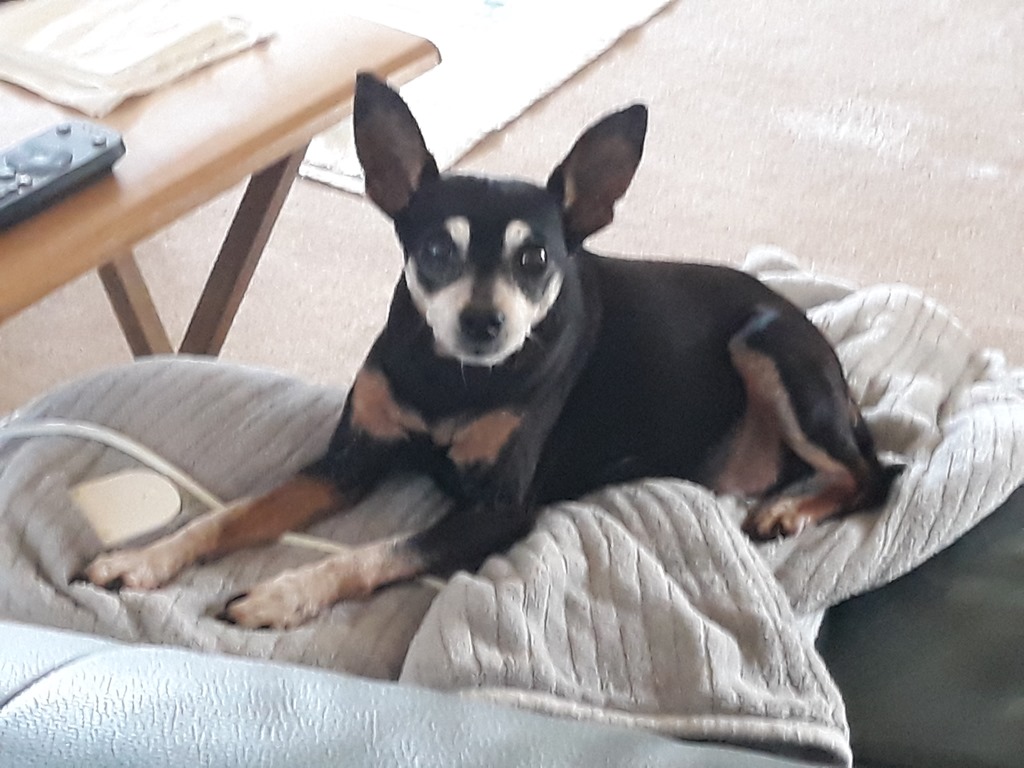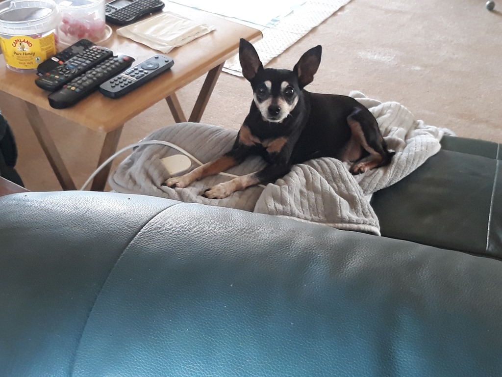Pixie guarding my heated rug will I was away – for 30 seconds