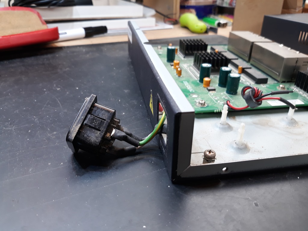 Removing the IEC socket took a while trying to depress the finger clips.