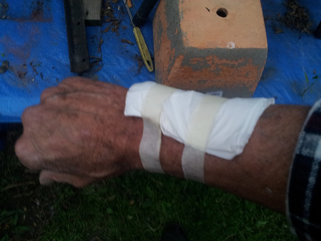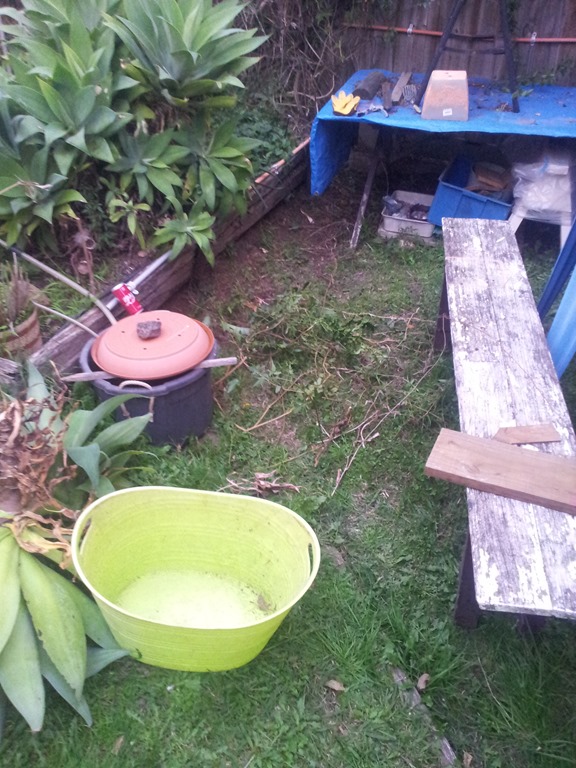 The birdbath is close to the workshop so decided to do away with the car battery and bring all the electrics inside and run from a 12V power supply. Loosing light and then had a double injury to the right wrist so we’ll have to come back in the morning – that’s fine.
