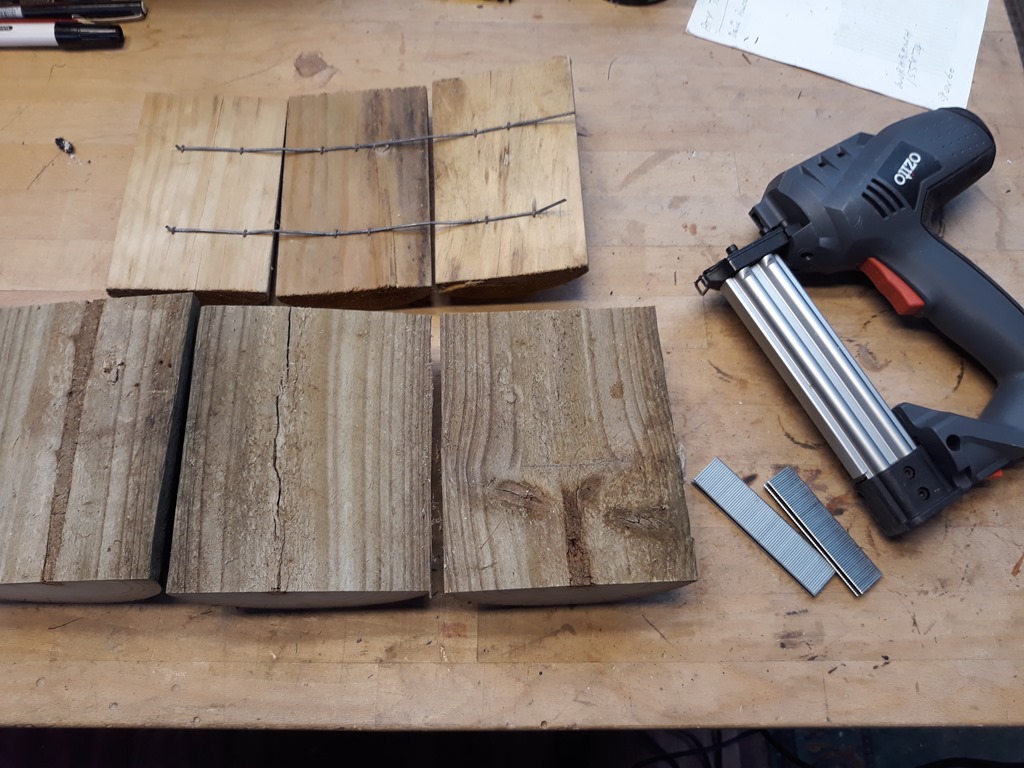 I need to make a jig to keep them in line when stapling as well as supporting and keep them level – thinking. Back soon…