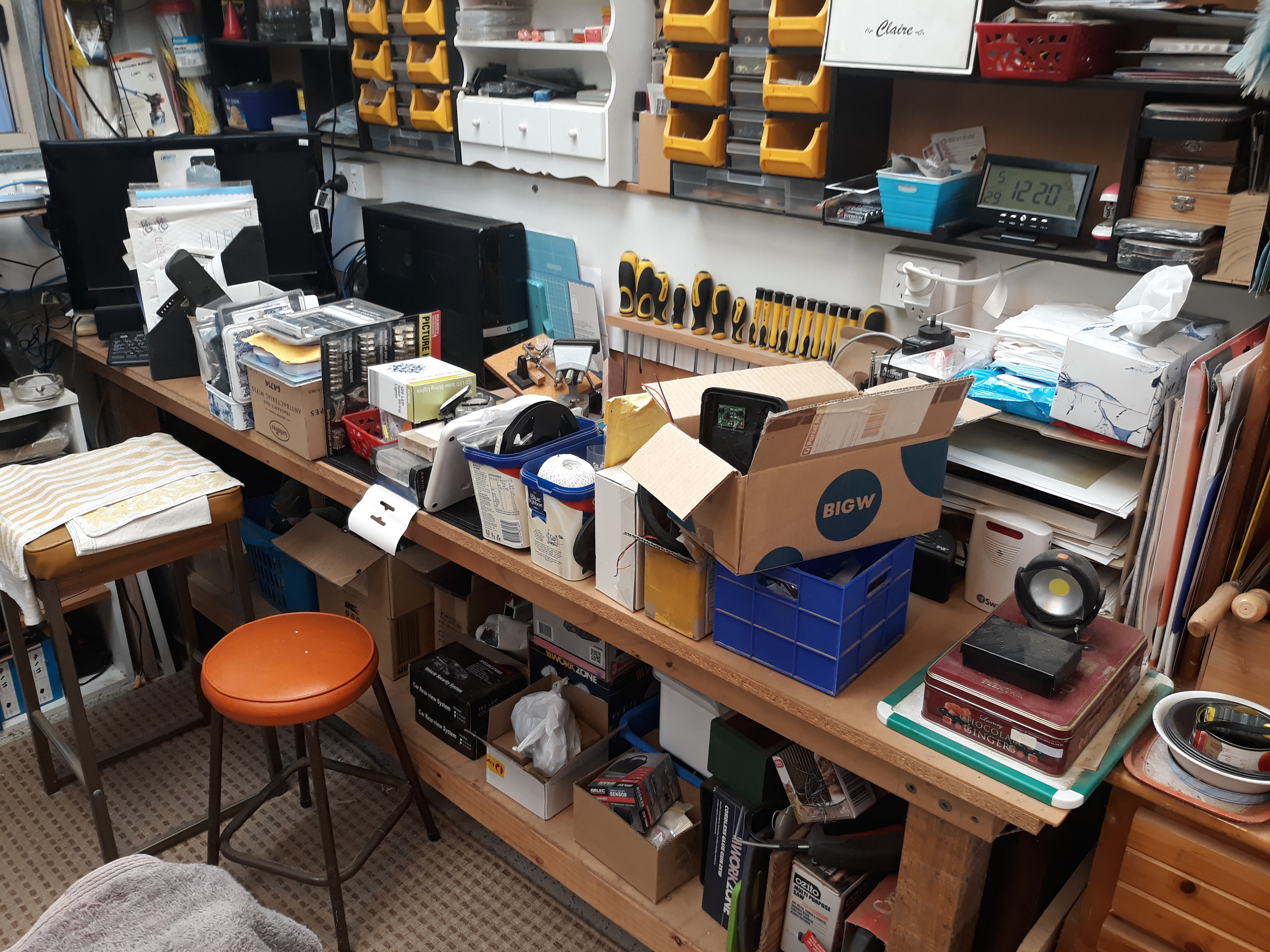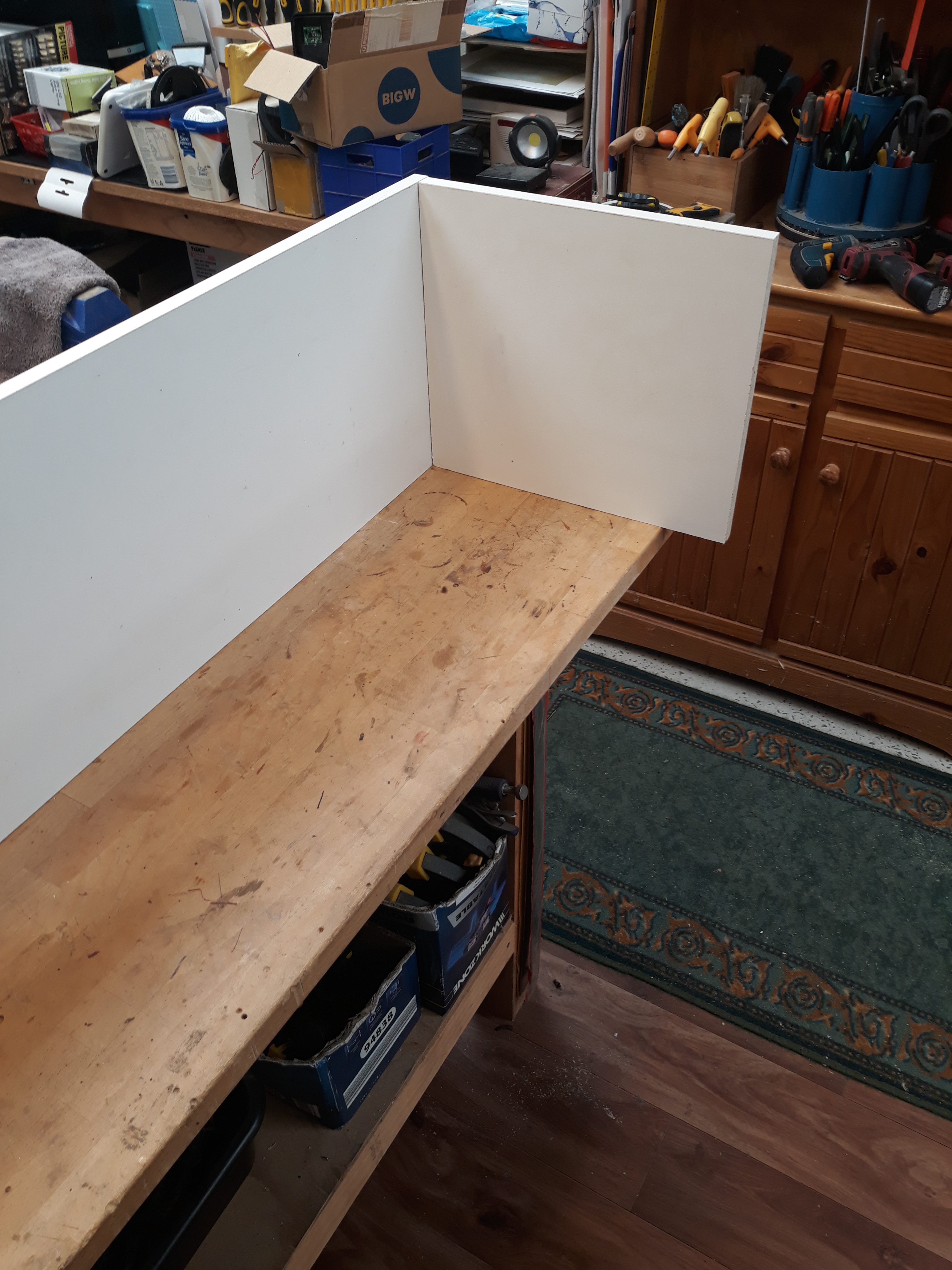 Replacing the electronics/electrical workbench top storage shelf which was simply a length of flooring timber from leftovers when our house was built in 1971 OMG