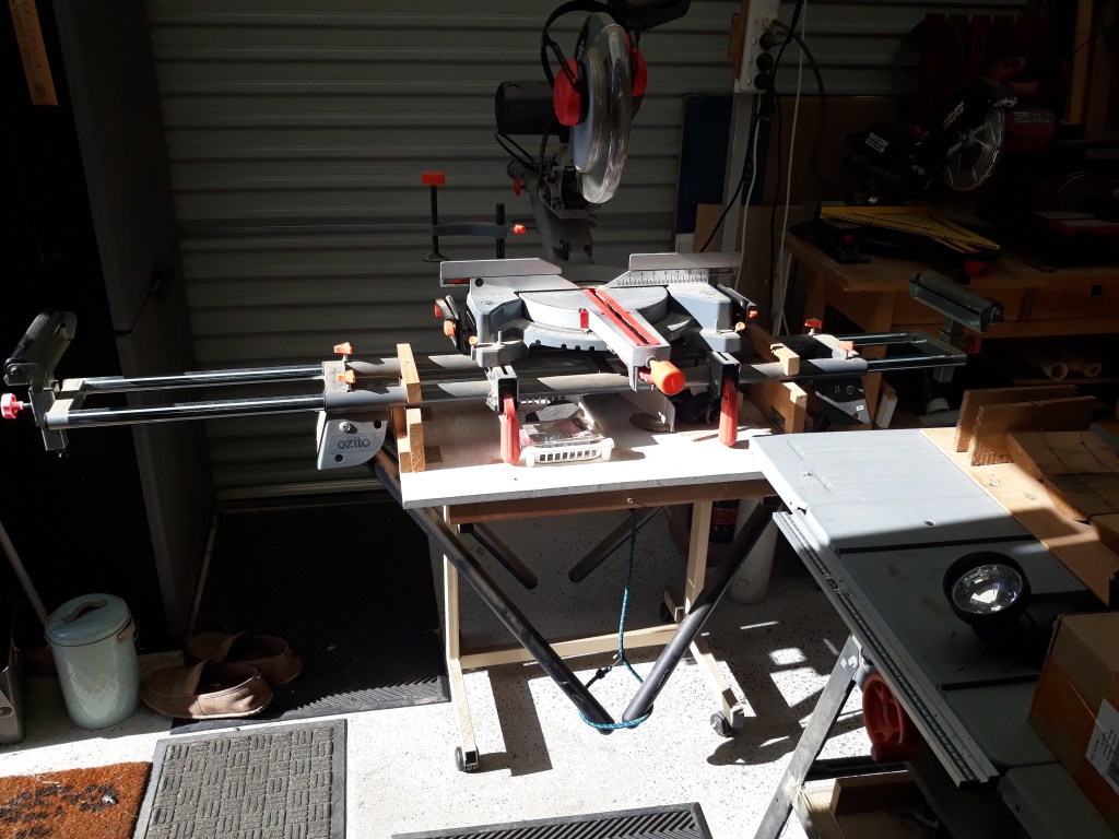 Setting up the Ozito 12″ sliding mitre saw.