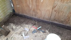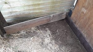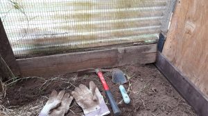 As posted yesterday before I can finish the last bit of pebble backfilling there’s some work to do inside the chook run – in that corner.