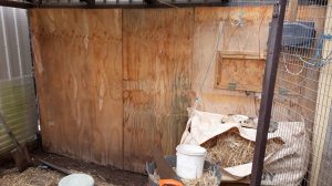 Speckles is not happy about the mess I’ve made in her home so besides screwing the plywood panels back onto the rails I’ll spend some more time in here tidying up.