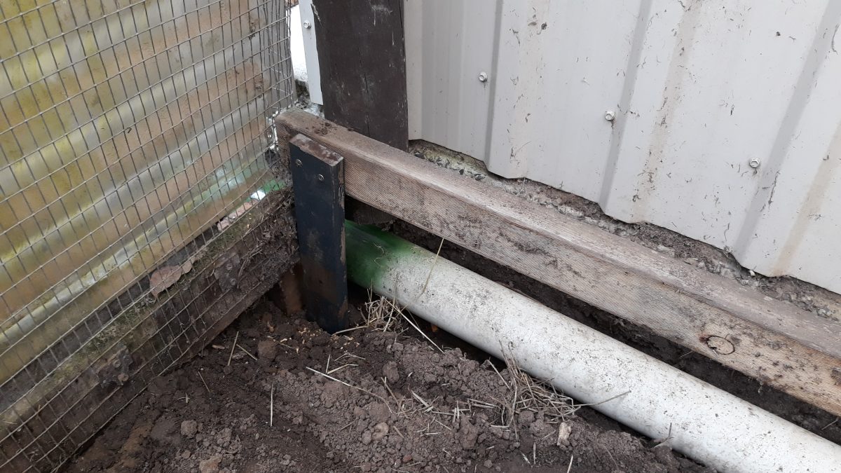 As posted yesterday before I can finish the last bit of pebble backfilling there’s some work to do inside the chook run – in that corner.
