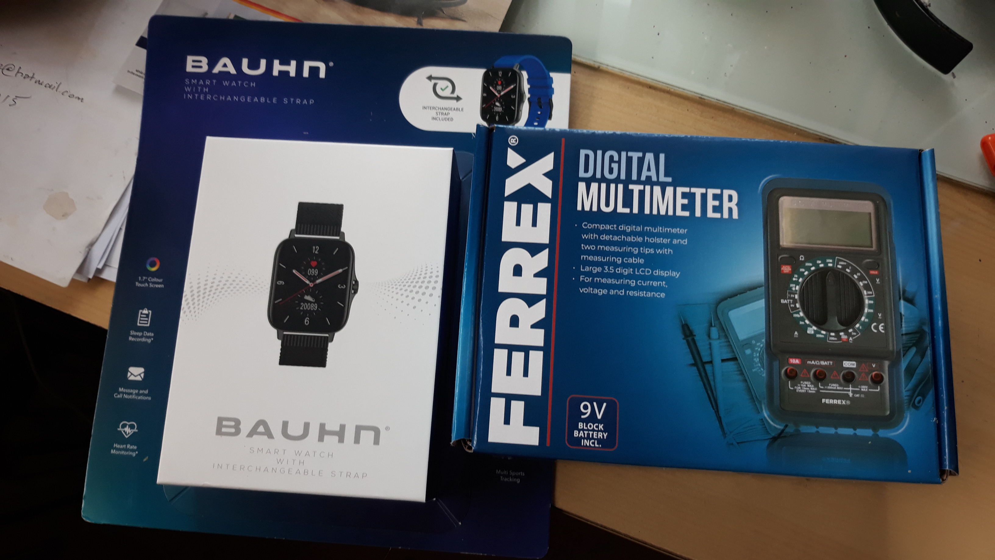 ET got herself the BAUHN Smart Watch and I the FERREX Digital Multimeter. I’ll report later on the watch.