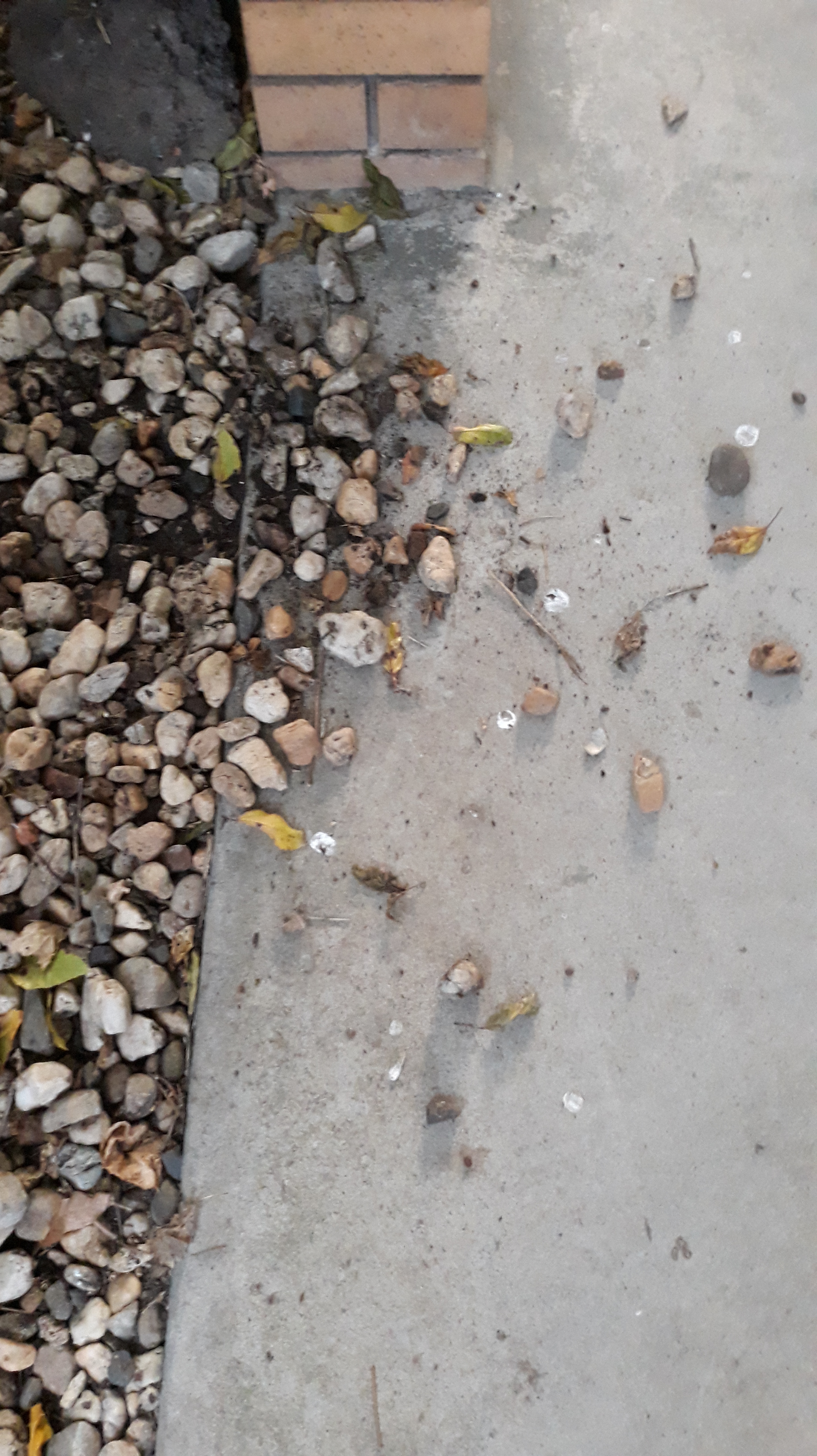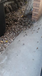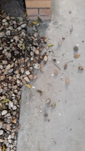 They are into landscaping, the mulch in all the garden beds has been dug out onto the grass and the garden pond has been rearranged – lol. Here is another example, bloody pebbles dug out onto the concrete!