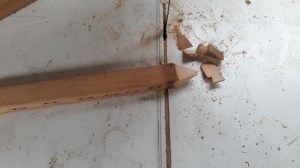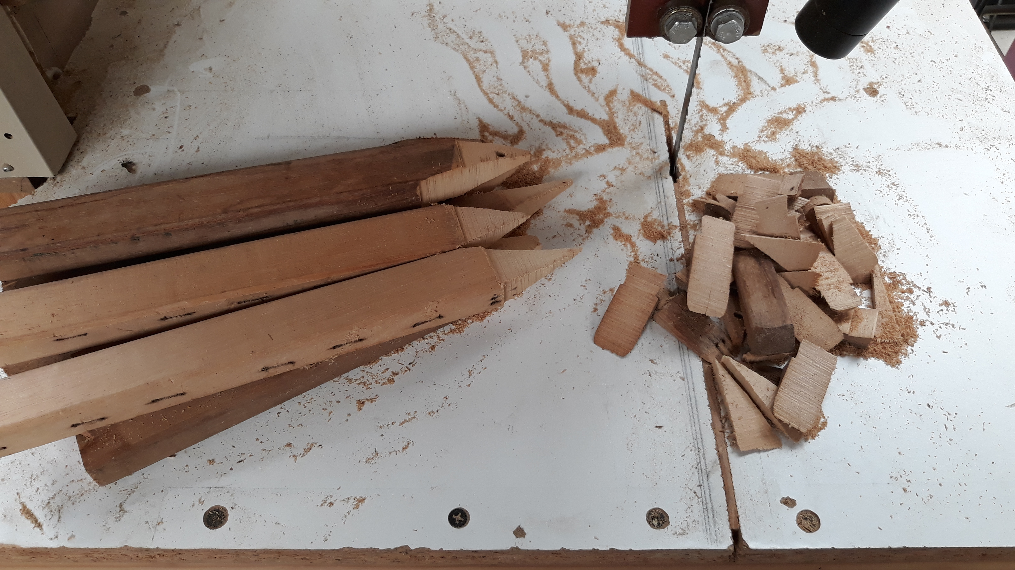 In the workshop I found some timber 50mm long so we’ll cut them in half.