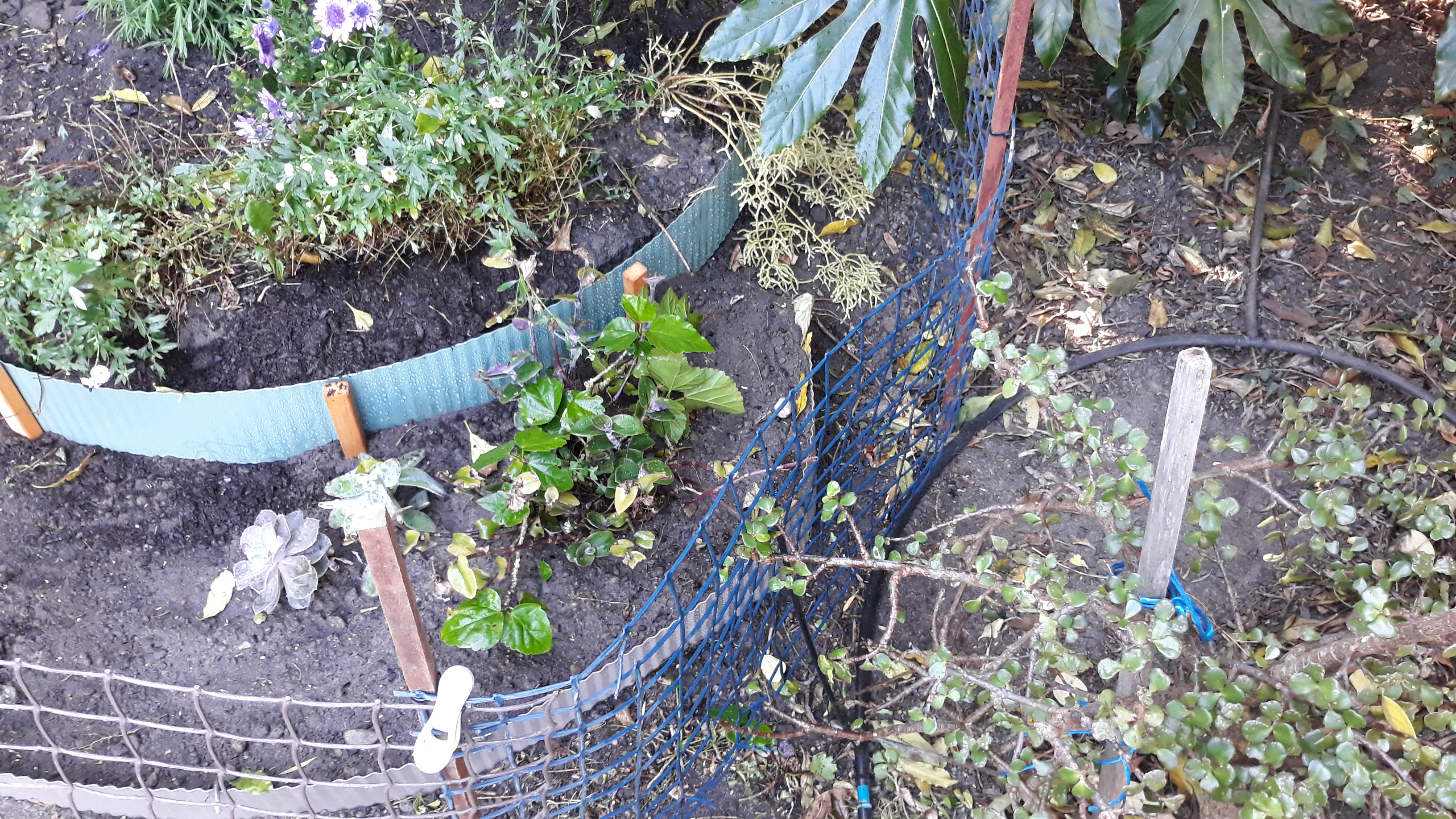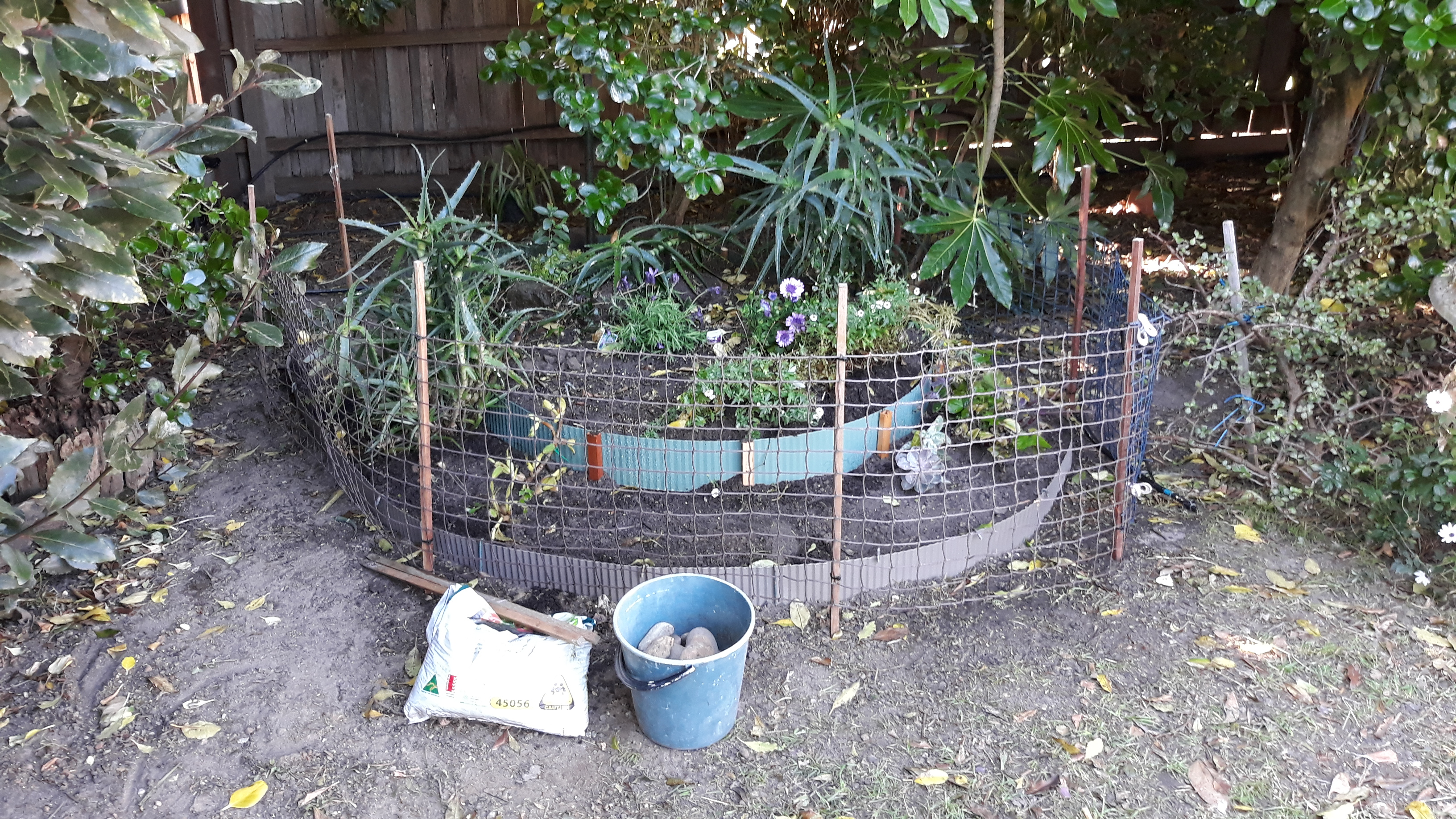 The moment I push a trowel into soil two heads appear and my view is blocked. Too risky… safety first I took them to the front and closed the carport gate.