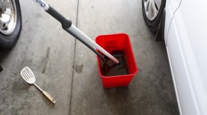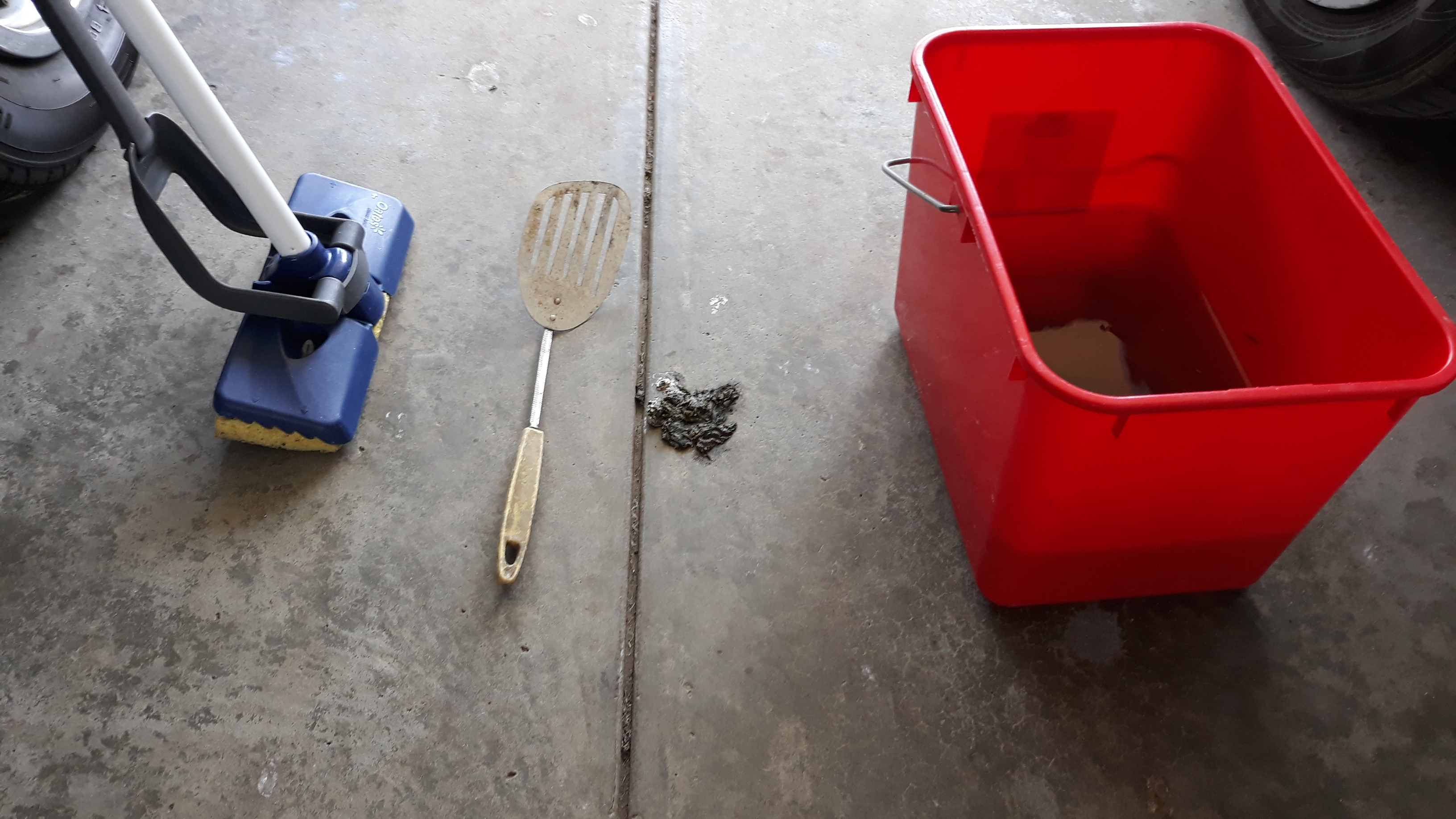Walked around in circles thinking how to clean up and then went downstairs to the rumpus room that is full of stuff, it’s like a store room. Found a forgotten mop & bucket plus something that will suffice as a pooper scooper.