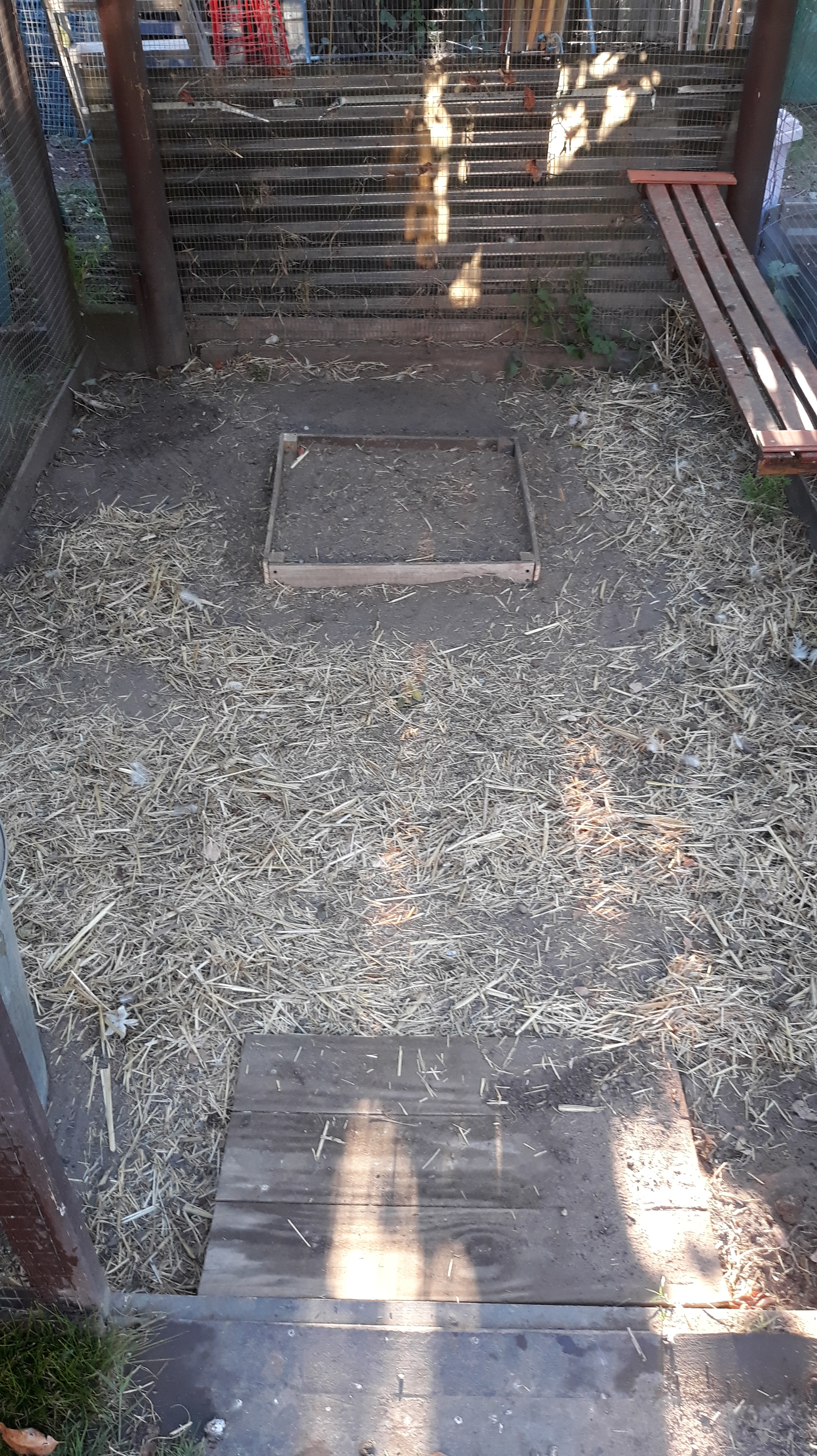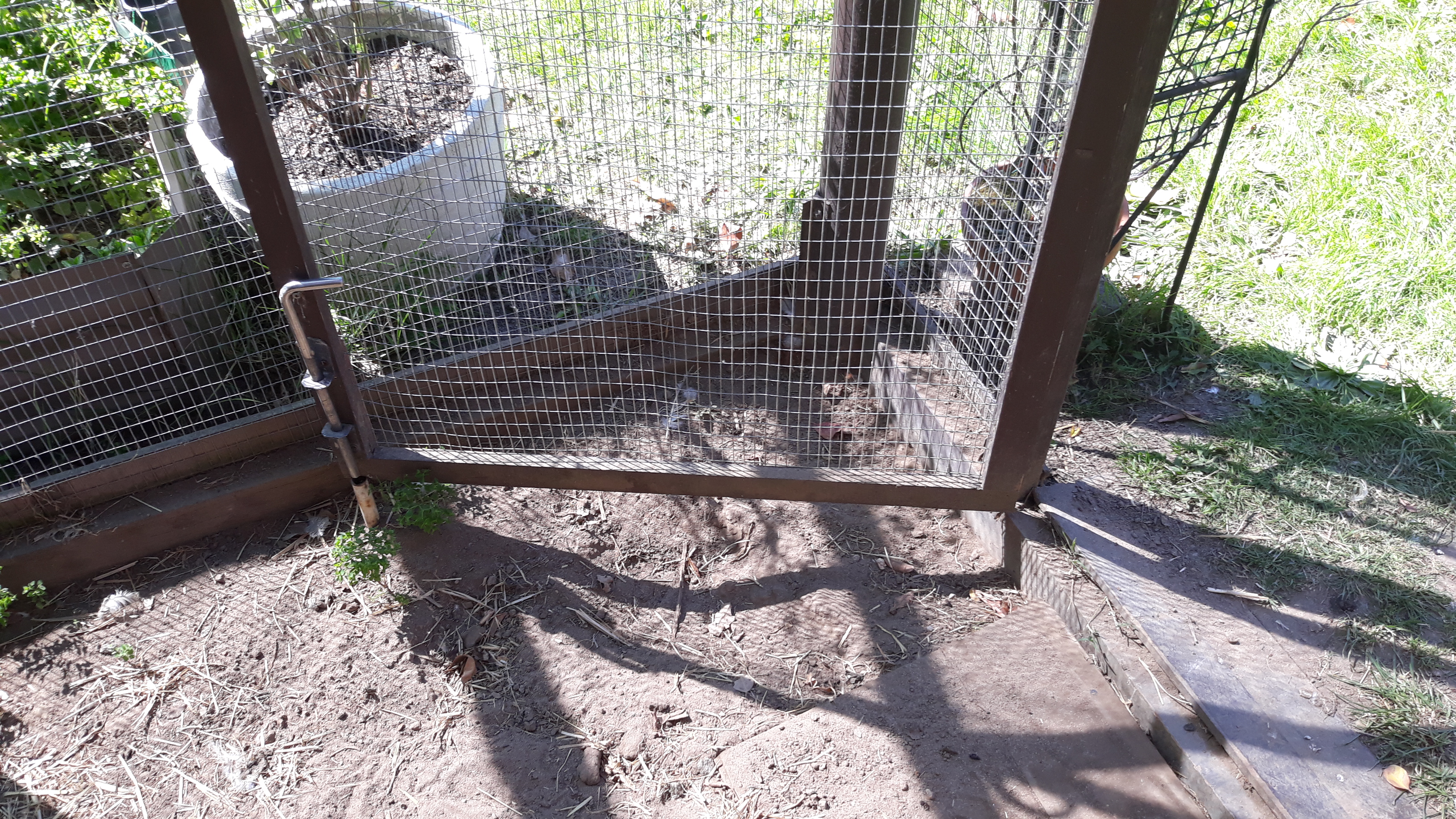 Still scratching my head why they picked this corner to dust. Yesterday I was in the carport area when I heard a chook calling so went out to check and was trapped behind the annex gate!