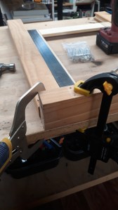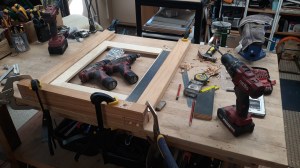 For this session we are up to the point where the frame sides and the bottom (base) have been screwed together with the door sliding nicely up and down. In the next session we will fit the frame top and take it from there. Oh… lovely day.