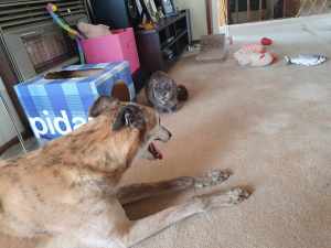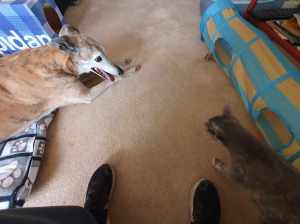 Sprocket aka Sir is back again for another stay while his mum is off camping. We have to be on watch for a while until they all (Sir, Bailey, Zia, Ruby & Rosie) settle down.