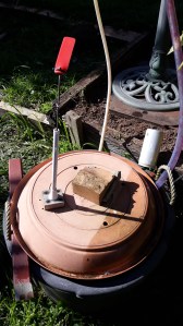 Lots of weeds so removed everything and got to work with the weeding tool and this time using a old BBQ plate to provide a solid base where previously the bath base just sat on the dirt and I used pieces of plywood for getting thins level.