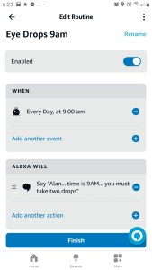 I mentioned in my last ‘happy’ post that after my check-up today the 4 hour one is not needed anymore (begone) so I am going through the 4 double-drop routines to change them from 2 to 1 drop.
