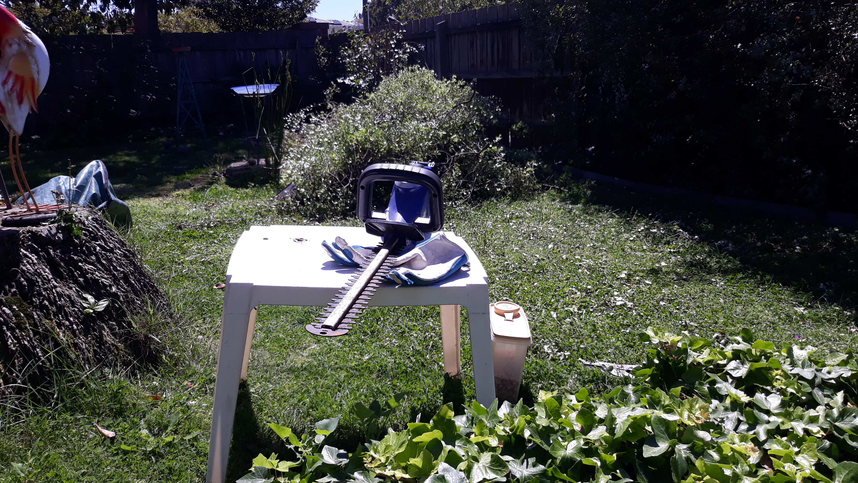 This end is always awkward can’t reach with step ladder up on the lawn so had to attack from around the corner with one foot on the ladder and other on the fence.