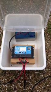 I used a hinged food storage box to house the controller and SLA battery.