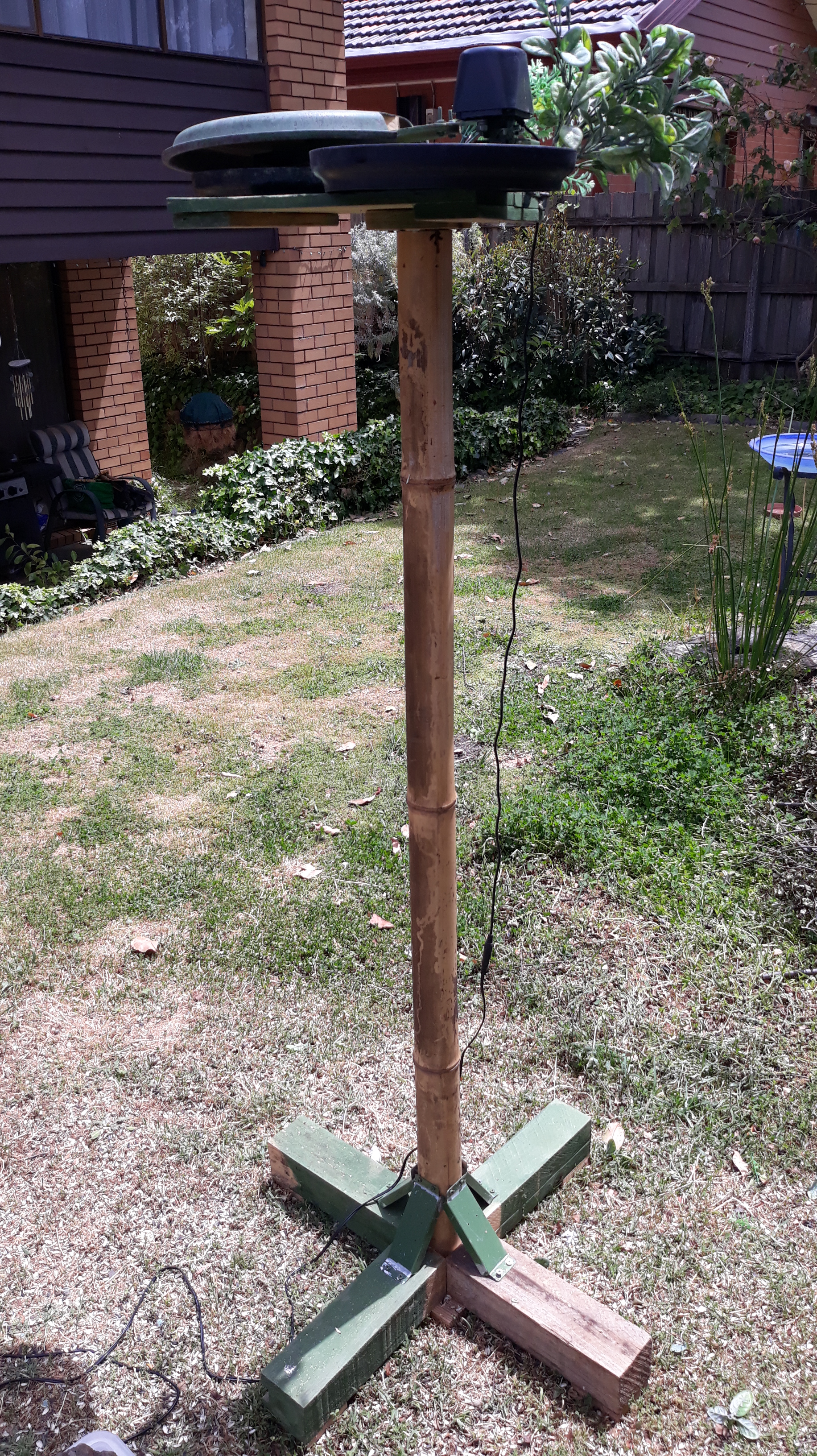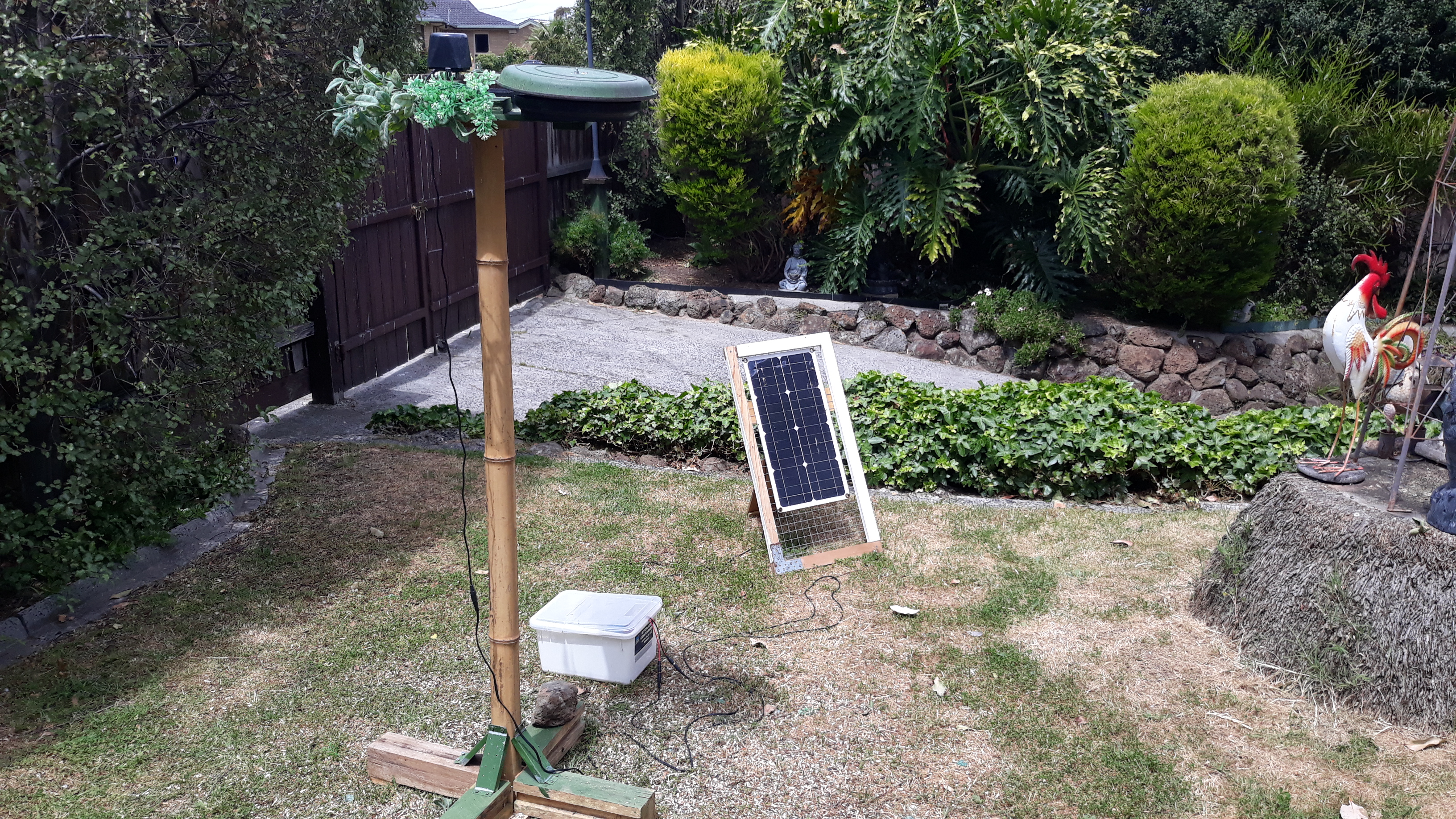 Due to a lack of sunlight I have been powering the bird feeder with a 240V extension which I bring in under cover each night.