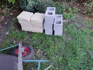 Need to clear the whole area so I have the space to peg out and run string lines for nine pod support pads for the 5M x 2.4M pod steel base. Each pad has a 1/2 besser block sitting on one or more pavers depending on the slope of the ground which is towards the back fence.