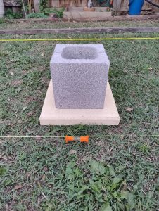 Each pad will have a gravel base with one or more pavers (depending on ground slope) with Half Besser block on top.